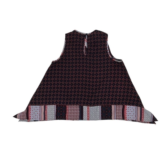 Monteau Blue Red Geo Print Sleeveless Handkerchief Blouse Size Small Women's