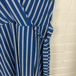 Monteau Blue White Striped Faux Wrap Mini Dress Size L