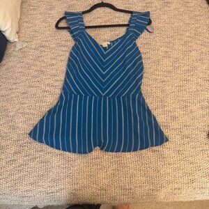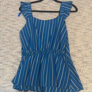 Monteau Blue White Striped Peplum Top-Woman's XL