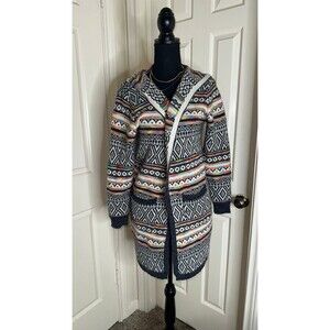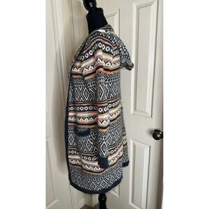 Monteau Bohemian Aztec Print Style Hooded Printed OpenFront Cardigan Size Medium