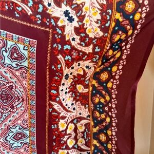 Stylish burgundy blouse with vibrant patterns. Ideal for casual outings or special events.
