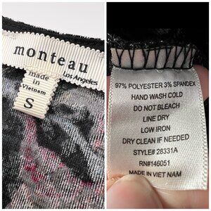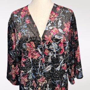 Monteau Crushed Velvet Burnout Floral Open Front Kimono Jacket Black Pink Blue S
