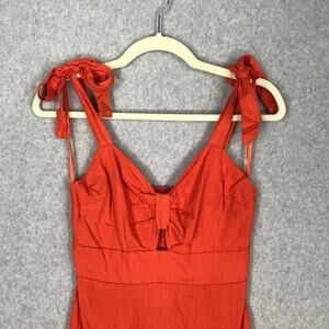 Monteau Dress Womens Small Orange Strap Tie Bow Western Preppy Festival Rodeo
