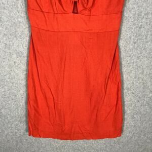 Monteau Dress Womens Small Orange Mini Ruffle Belt Slit Preppy Boho Festival Twee Western Boho Bohemian Hippie Beach Vacation Resort Cowgirl Coastal Keyhole Mini Short Linen Blend Sweetheart Tank