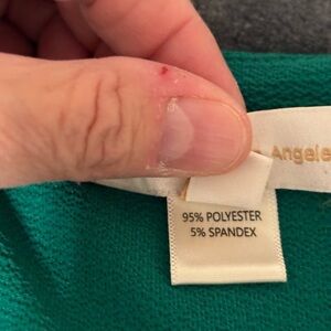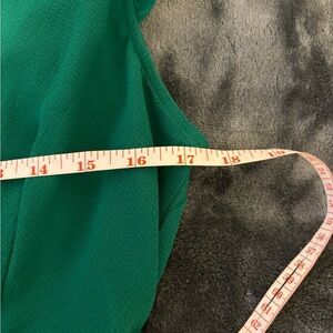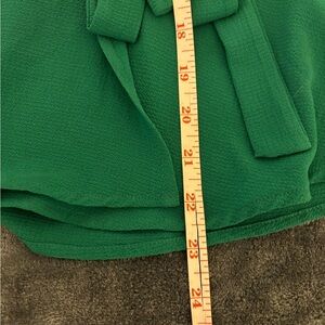Elegant emerald top with ruffle accents. Wrap style with side bow. Ideal for any occasion.