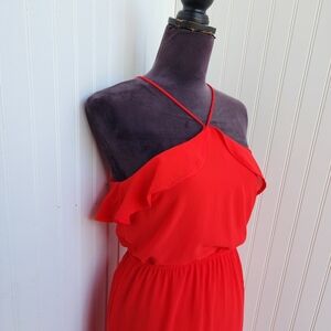 Monteau Fit & Flare Dress Women's Red Ruffled Spaghetti Straps Halter Neck Sz S