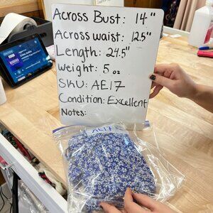 Across Bust = 14", Across Waist = 12.5", Length = 24.5"