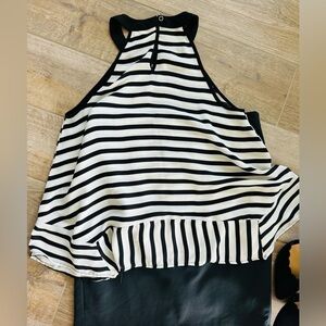 Monteau Flowy black & White Stripped Top Size Small. Measures 18” pit to pit. Cute work top! Excellent condition. Shoes and skirt not included and sold in a separate listing!