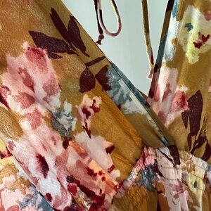 Lightweight maxi dress, extremely flattering on variety of body shapes. Features a mix of vibrant colors. Please note, this fabric is very lightweight so a slip underneath may be necessary.