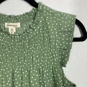 Monteau Green and White Polka Dot Tiered Dress size medium