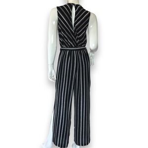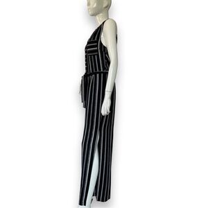 Monteau Jumpsuit stripe side slit belted sleeveless