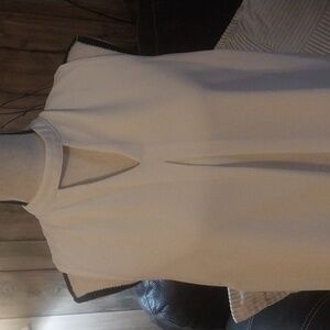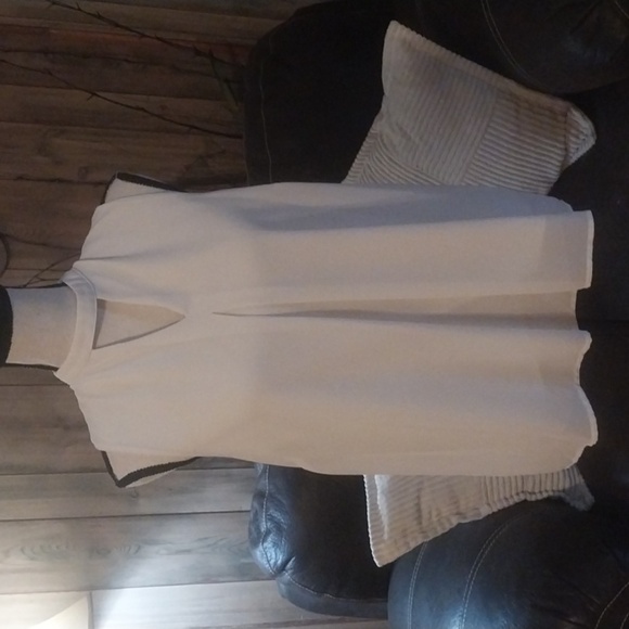 Monteau Key Hole Silky Lined Shell Top Ivory Sleeveless Blouse Size L