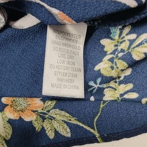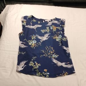 Monteau LA Womens Sleeveless Blue Top with Crane and Floral Print Size Medium