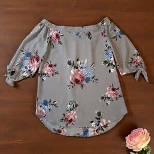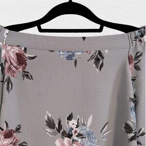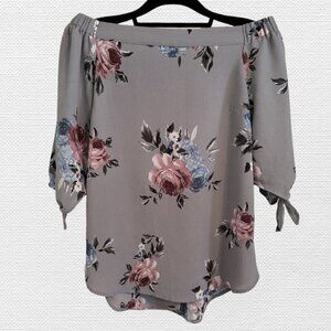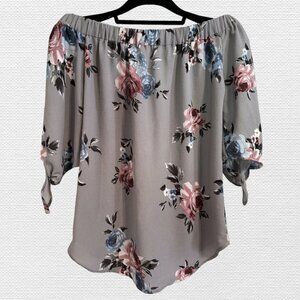 Monteau L.A. gray floral print off-shoulder blouse SIZE M