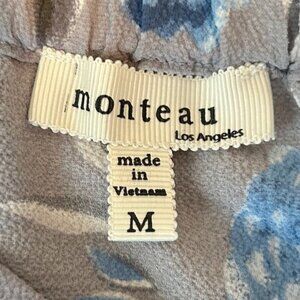 This pretty pullover style blouse from Monteau Los Angeles has an elasticized neckline in the back so that it can be worn off shoulder, elbow length tie sleeves, and a rounded hi low hemline. It is pre-owned in very good condition and has been freshly cleaned for you.