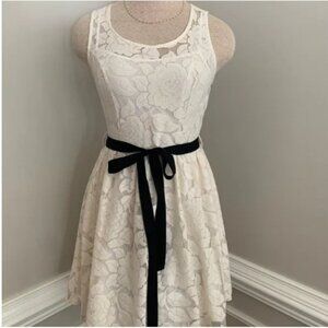 Monteau Lace Dress Ivory with black ribbon belt Size Small