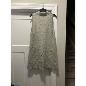 The Monteau Lagenlook Beige Oatmeal Collared Long Line Sweater Vest in size Medium is a warm and stylish addition to any woman's wardrobe. This sleeveless vest features a collared neckline and strappy sleeves, perfect for cooler weather. Made from a soft knit of nylon and acrylic, this solid beige sweater vest is accented with pockets and has a classic yet nature-inspired theme. The brand, Monteau, is known for its quality and unique designs, making this vest a versatile and fashionable choice for any occasion.