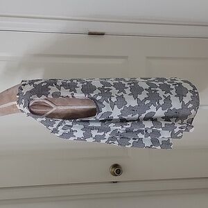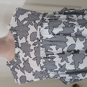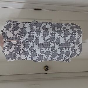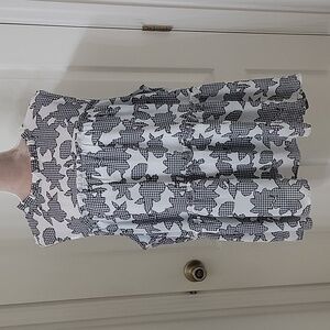 Monteau Light Gray & Black Printed High Neck Sleeveless Tiered Ruffle Blouse. Size 3X. Excellent Used Condition. Back Keyhole with Button Closure. No Holes, Rips, Stains or Snags. Great summer top that can be dressed up or down. Please refer to measurements in photos to ensure proper fit.