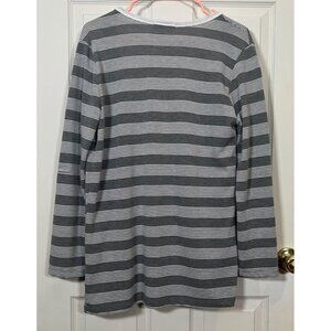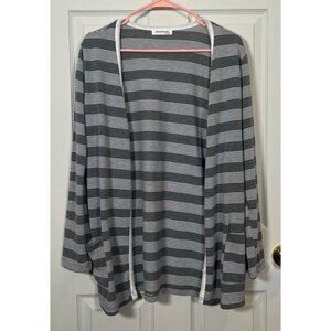 Monteau Lightweight Striped Open Front Cardigan Sweater Gray/White L