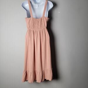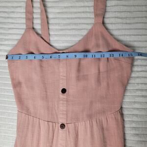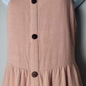 Monteau Linen Blend Button Front Dress M Pink Sleeveless Midi Boho Cottagecore