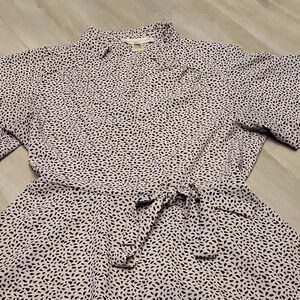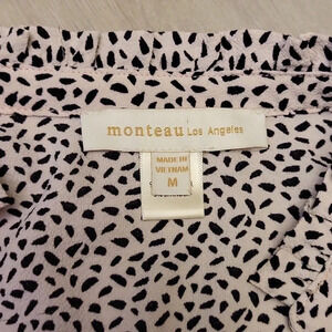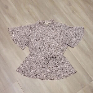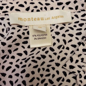 Monteau Los Angeles Faux Wrap Pink Black Peplum Flutter Sleeve Top Womens Size M