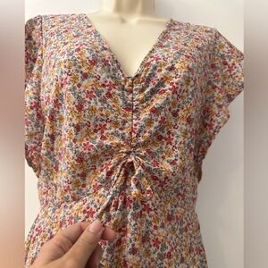 Monteau Los Angeles Floral Ruched Shortsleeve Ruffled Flowy Multicolored Size M