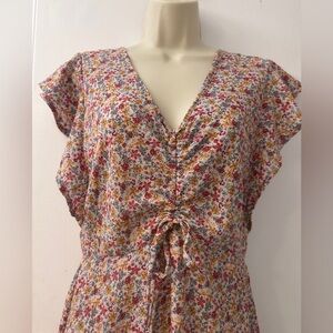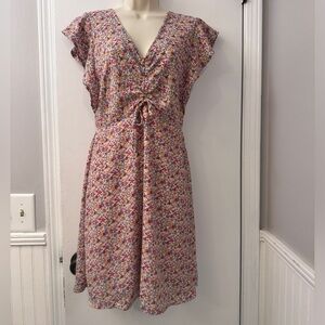 Floral Monteau Los Angeles Ruched Bust Shortsleeve Ruffled Flowy Dress Size M