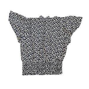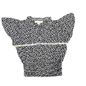 Monteau Los Angeles Floral V-Neck Flutter Sleeve Top Navy Blue and White Size S