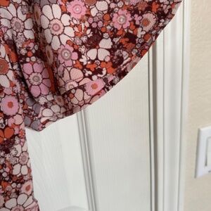 Monteau Los Angeles Floral Wrap Dress with Flutter Wing Pink Burgundy Size M