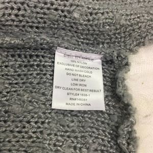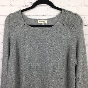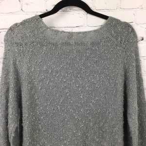 Monteau Los Angeles Grey Swiss Dot Semi Share Lightweight Acrylic Nylon Lace Hem Boat Neck Pullover Sweater Women's Size Large