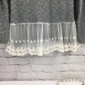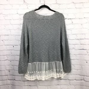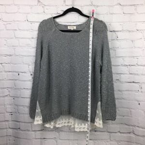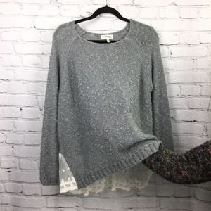 Monteau Los Angeles Grey Swiss Dot Lace Hem Boat Neck Pullover Sweater L