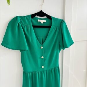 Monteau Los Angeles Kelly Green Cinched Waist Flutter Sleeve Womens Dress Small