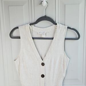 Monteau Los Angeles Linen Blend Sleeveless Button A-Line Midi Dress Size Small