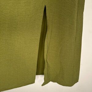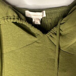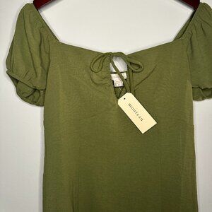 Monteau Los Angeles | Olive Green Midi Dress | Tie Front Puff Sleeve | Size M