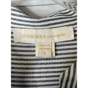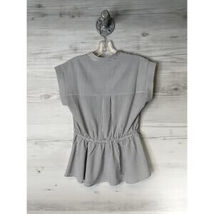 Monteau Los Angeles Shirt Womens Small Black White Striped Peplum V-Neck Casual