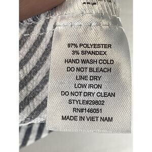 Details: Peplum hem, cap sleeves, elasticized back waist, mixed-direction stripe panels, pullover design, lightweight stretch fabric. Care: hand wash cold, line dry, low iron; do not dry clean.