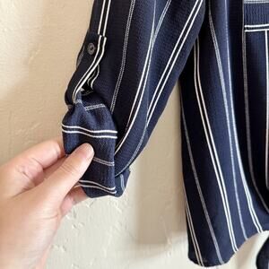 Monteau Los Angeles Size Large Juniors Blouse - Navy Striped Pockets Tie Front