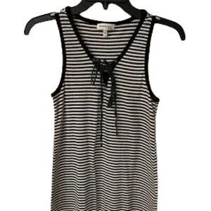 Monteau Los Angeles Striped V-Neck Tie Front Tank Top. Black/White. Small.