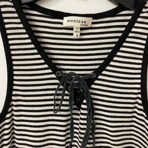 Monteau Los Angeles Black and White Striped Tank Top. Small. 51% Polyester, 49% Cotton. Hand wash cold. Pre-owned.