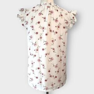 Monteau Los Angeles White w/ Pink Floral Flutter Cap Sleeve Blouse, Women’s M
