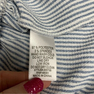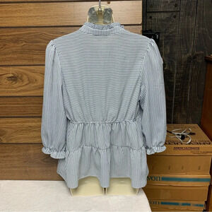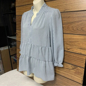 Absolutely adorable blue and white striped top V neck, elastic sleeve baby doll style