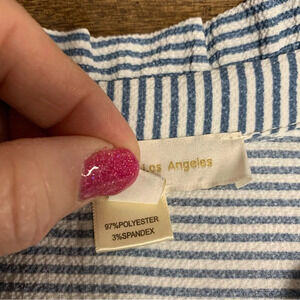 Monteau Los Angeles blue/white seersucker blouse size large mandarin collar