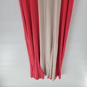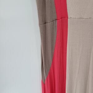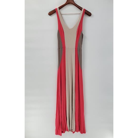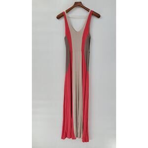 Monteau Maxi Tank Dress Womens M Beige Red Tan Color Block V Neck Sleeveless