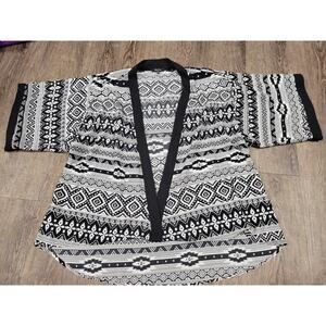 Monteau Medium Semi-Sheer Black White Geometric Kimono Flowy Light