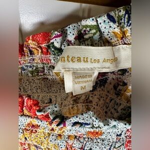 Monteau Multicolor Floral Patchwork Puff Sleeve Crop Top