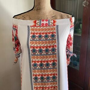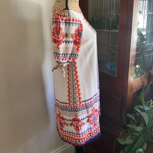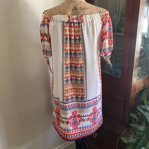 Monteau Multicolor Off Shoulder Mini Shift Dress Size M Damask Print Bohemian