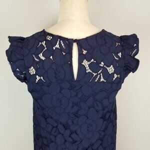 Monteau Navy Blue Lace Sheath Dress with Flutter Sleeves Women's Size Small NEW