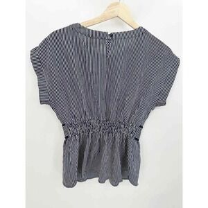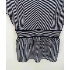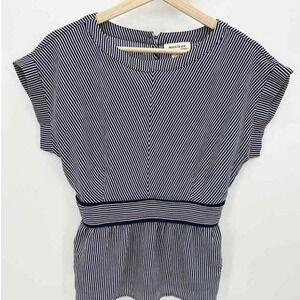 Navy blue white striped short sleeve keyhole top.