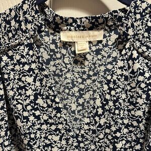 This elegant blouse from Monteau features a striking navy and white pattern, offering a chic peplum style that adds a touch of sophistication to any outfit. The blouse is designed with a flattering fit, making it a versatile addition to your wardrobe. Perfect for both casual and formal occasions, this top is a must-have for those who appreciate timeless fashion.