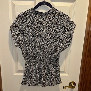 Monteau Navy and White Peplum Blouse